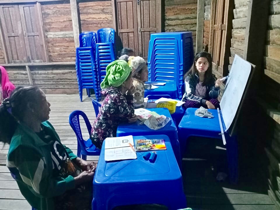 Das Lesen und Schreiben in Burmesisch und Tedim wird überwiegend für Frauen, aber mit zunehmendem Interesse auch der männlichen Bevölkerung, unterrichtet.