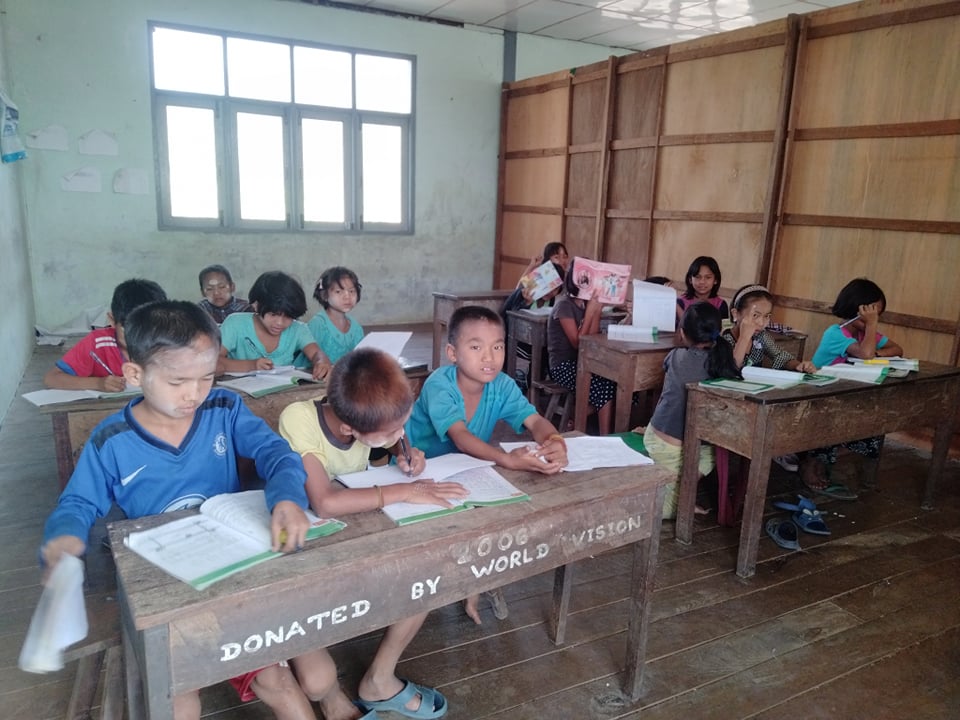Der Schulunterricht beinhaltet die Fächer Sprachen (hier Englisch, Burmesisch und Tedim (die vorherrschende regionale Sprache dieser Chin-Region) und Mathematik in 5 Stufen oder Klassenniveaus für jeweils 1 Stunde pro Fach pro Tag an fünf Tagen pro Woche.